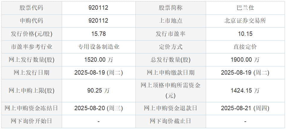赞助商(主要保险公司):Gujin Securities Co.,Ltd。发行状态:公司资料:公司是一家高科技公司,专注于汽车维修设备,测试和维护的研究,开发,生产和销售。该公司的主要产品包括轮胎拆卸机,平衡机,电梯,回收机和制冷剂填充,气动油提取器,其他汽车维护和其他设备。直到当天,我们签署了该公司最大的股东Cai Xilin的潜在客户,占公司股票的18.27%,而第二大股东上海Jingjia的股票占公司股票的12.17%,而Feng的股份是该公司的第三股份股东,该公司的股份是该公司的第三股份,该公司拥有11.45%的股份。公司的三个主要股东也有类似的参与,没有更多汉30%。如果单个直接股东仅基于其行动,它将不会对股东会议的决议产生关键影响,并且该公司将没有股东的控制权。 Cai Xilin和Sun Lina是该公司的真正控制器。直到潜在客户签署的那一天,Cai Xilin还是公司的总裁兼总经理,直接占公司股份的18.27%。通过担任上海Huilanshi的执行合伙人,该公司的4.76%间接控制。 CAI Xilin通过上海Jingjia和Feng Dingbing控制了公司的23.63%的行动(即,通过与上海Jingjia签署的“诉讼协议”(也就是说,该公司的行动中有12.17%的行动的12.17%,该公司的股份占公司的11.45%的公司和Controls和Conternats的股份和46.6%的股份,占公司的6.6%的6.6%,该公司的股份和公司的股份为46%。公司,占上海jingjia首都的9.16%,股份参与的6.00%Hai Huilanshi协会和广州Pulanshi协会参与的5.57%。因此,Cai Xilin和Sun Lina共同控制公司的46.66%,是公司的真正控制器。根据“协议协议”和“协议行动协议变更的补充协议”,由凯Xilin,冯丁金和上海吉吉亚签署,该协议协议协议的第一个日期是2017年4月10日,于2027年4月10日出售,或在2027年4月10日或在国家交易所进行出售。北京和北京袋已过期36个月。两个胜利。如果ISA在一致的各方之间存在分歧,那么Cai Xilin的观点将获胜。 Cai Xilin和Sun Lina是中国民族,永久居住在匈牙利。 Balanci于2025年8月15日揭示的传单显示,它计划筹集2999.9.9亿元人民币,以扩大其智能转型和Automotive Vaintenance Equi的智能转型和扩展Pment,用于提升设备和研发中心的建设项目的智能工厂项目。宣布向联合国特定合格投资者发行股票的消息和Balanci于2025年8月15日发布的北京证券交易所名单,这表明,如果发行成功,该公司收集的资金总数为29,900,则预计会在行使大部分的选项之前进行。在扣除了820,000元人民币和416.37亿元人民币(不包括增值税)的发行成本后,估计收取的ISOF 2.863亿美元的资金数量。如果完全行使了过多的选择权,则该公司收集的资金总数预计为344,7.93亿,估计净资金为299,1.115亿,此前扣除了456.815亿元的发行成本(不包括VAT)。