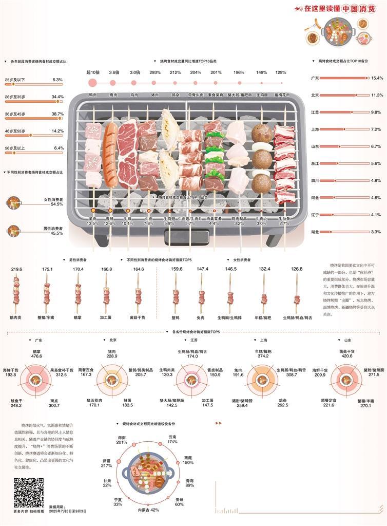 数据来源:JD BBQ的工业发展研究所是一种古老的烹饪方法,至今一直很有吸引力。男人,女人,老年,年轻,东西方,所有人都喜欢。烧烤很简单,但是对成分的新鲜度有很高的要求,并且对成分和热控制的特性有一个想法。数据表明,牛肉和羊肉是消费者中最受欢迎的烧烤成分。其中,羊肉的交易量最高,肉类产品列入了烧烤的10个主要成分。此外,随着对新鲜风味消费者的需求不断增长,几种烧烤小众成分脱颖而出,销物正在迅速增加。数据表明,鸭子,鹿和鸽子的商业量已经增加了几次。我的烧烤偏好不分为北部,东部或西部,但是烧烤成分的偏好因一个区域而异。从不同地方烧烤食材的偏好来看,南部地区的消费者更喜欢家禽成分。其中,广东话的消费者更喜欢鹅,尤其是鹅的脚。江苏和上海的消费者喜欢鸭肠,鸭血,鸭舌和其他鸭子产品。北部地区的消费者通常更喜欢牛成分。例如,我们可以看到北京和山东消费者首选的五种主要烧烤成分的猪肉产品。一个炉子,火,标志,烤肉,烧烤是一种美味的成分,生活的烟花越来越多。如今,许多地方的特殊烧烤已成为访问当地城市的卡片,烧烤已成为人们娱乐和享受的一种社交方式。烧烤行业正在经历道路上的食物摊位的变化D小型商店的品牌和规模。目前,我国有超过596,000家与烧烤有关的公司,许多重要的区域品牌出现在多个地方,而Chain是烧烤行业的起源。这是展览中的重要趋势。更加出乎意料的是,在每个人的眼中,烧烤都有10,000多个相关专利的申请,包括大多数与烧烤团队有关的专利请求。您会看到“ BeardSmall COA”有许多重要形式。